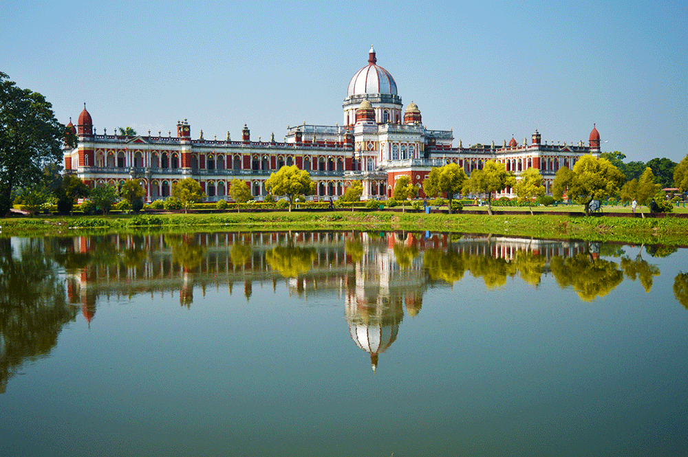 Cooch Behar Palace, also called the Victor Jubilee Palace, is a landmark in Cooch Behar city, West Bengal. It was modeled after the Buckingham Palace in London in 1887, during the reign of Maharaja Nripendra Narayan of Koch dynasty. The Cooch Behar Palace is noted for its elegance and grandeur It is a brick-built double-story structure in the classical Western style covering an area of 51,309 square feet (4,766.8 m2). The whole structure is 395 feet (120 m) long and 296 feet (90 m) wide and is on rests 4 feet 9 inches (1.45 m) above the ground. At the southern and northern ends, the Palace projects slightly and in the center is a projected porch providing an entrance to the Durbar Hall. The Hall has an elegantly shaped metal dome, it is 124 feet (38 m) high from the ground and is in the style of the Renaissance architecture. There are various halls in the palace and rooms that include the Dressing Room, Bed Room, Drawing Room, Dining Hall, Billiard Hall, Library, Toshakhana, Ladies Gallery and Vestibules. The original palace was 3 storied, but was subsequently destroyed by the 1897 Assam earthquake. The palace shows the acceptance of European idealism of the cooch kings and the fact that they had embraced European culture. It was converted into museum in 2002 and the objects belong to the Koch dynasty were displayed in the museum. In present time, 08 nos. of galleries are opened where arms, billiards, oil painting, sculptures, and ritual objects etc. have been exhibited for the visitors.
